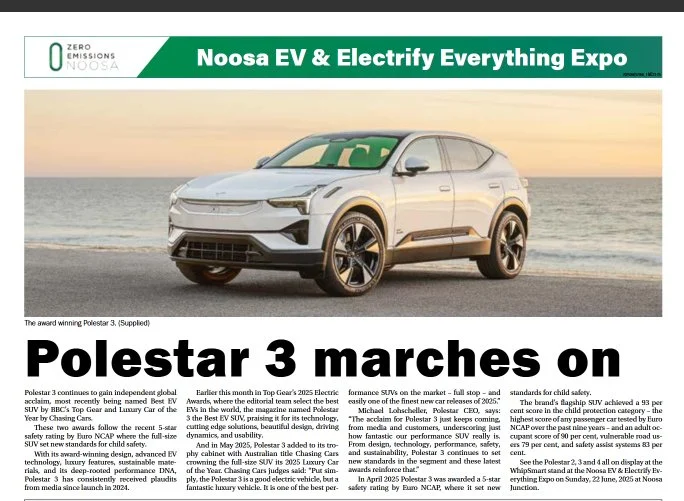 Polestar 3 continues to gain independent global acclaim, most recently being named Best EV SUV by BBC’s Top Gear and Luxury Car of the Year by Chasing Cars.